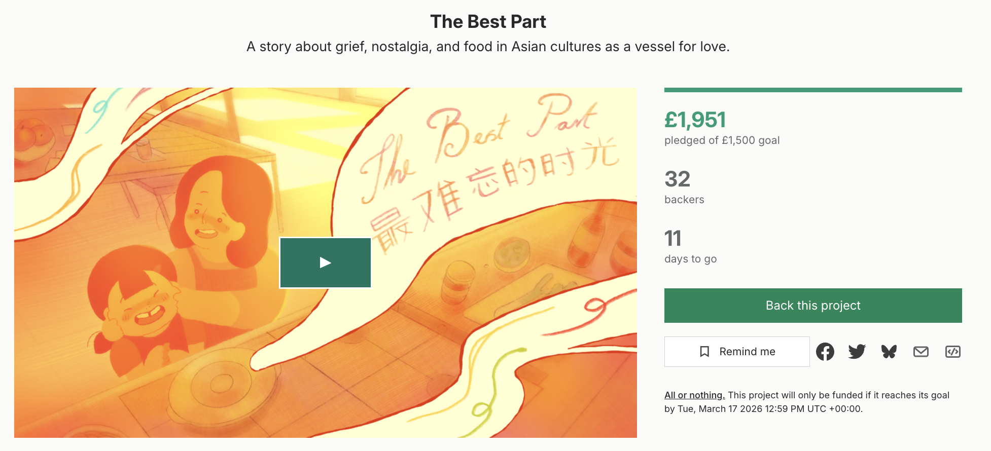 The most important part of running a Kickstarter campaign, I found, starts far before your Kickstarter launches: you need to build hype around your product. We announced our Kickstarter several months before it went live – although in retrospect I would have started even earlier. The key factor is to have people invested in the film and excited to donate to it on launch day. Alongside the director we crafted two target audience profiles for our Kickstarter: the digital art/animation fan, and parents who could relate to the themes of the film (particularly Asian ones, as the film is influences by Asian cultures).