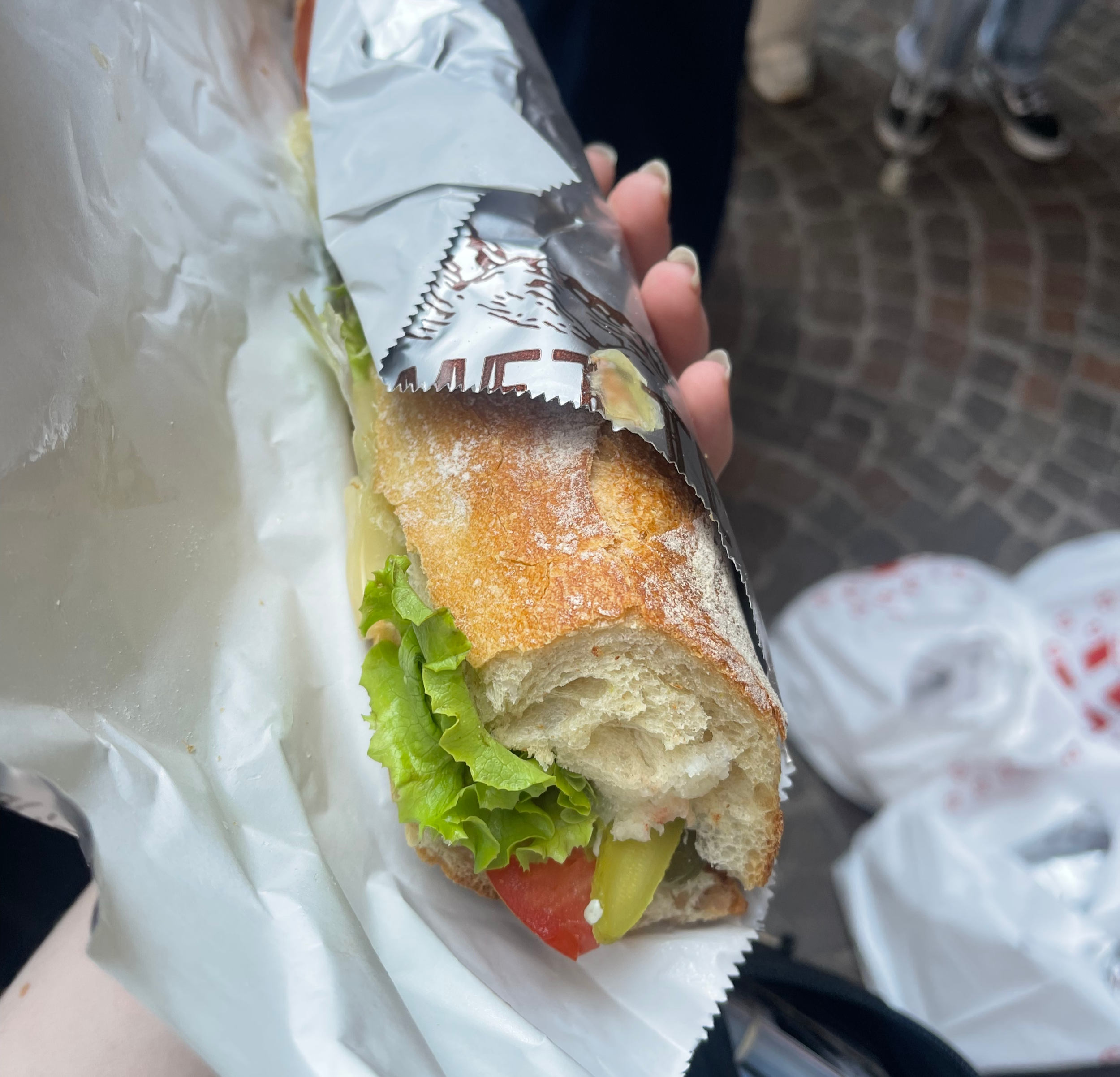 The ‘normal’ one had ham. I got the vegetarian one, which had lettuce, tomatoes, and gherkins.