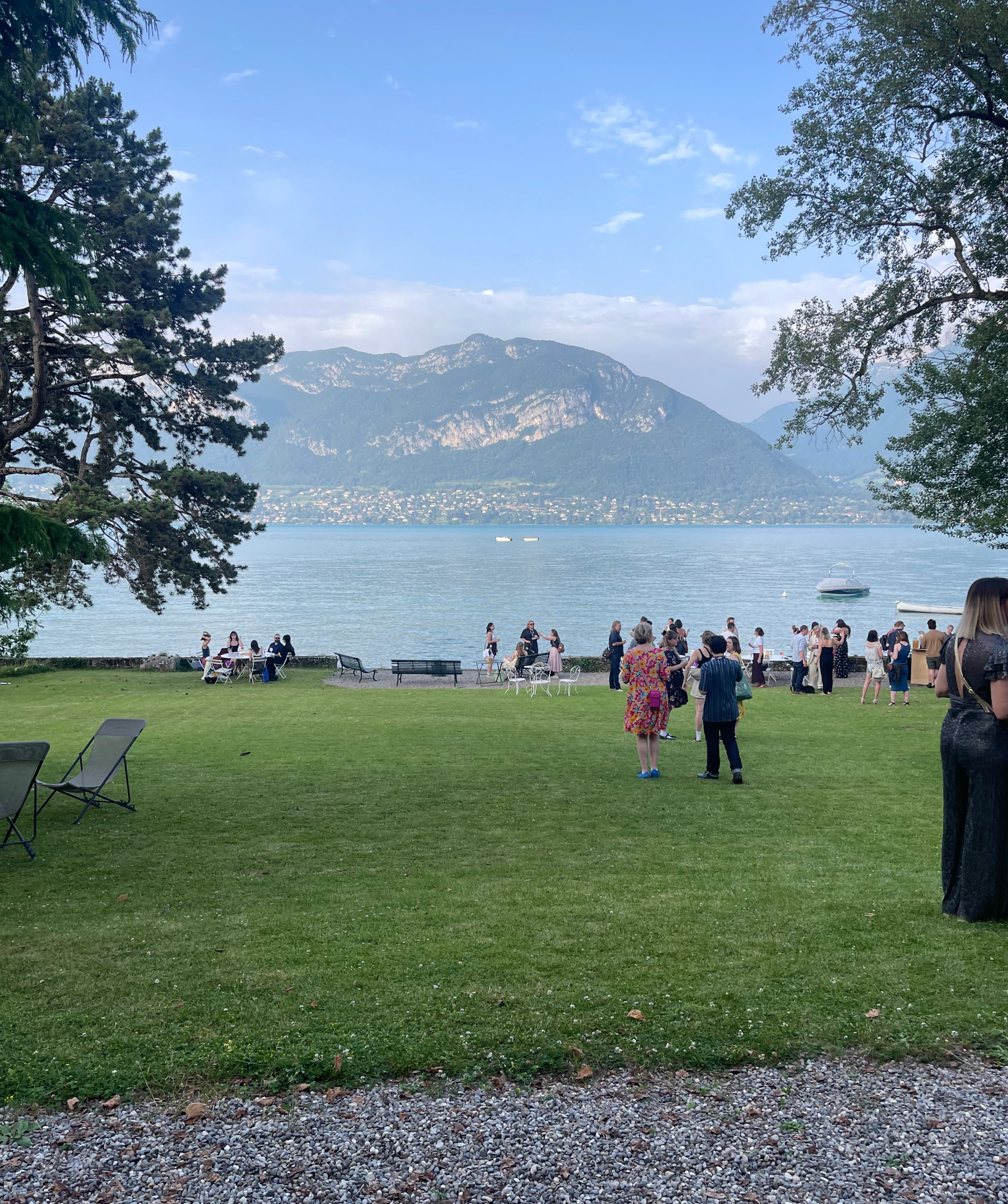 Picture suited waiters weaving through the crowds with platters of all sorts of foods, for all sorts of diets, all being offered for whenever you may want a nibble. The jetty was used for speedboats, which chauffered important guests from hotels all around the lake directly to the party. As the sun dipped below the horizon and the moon came out, coloured lights lit up the lawn in all sorts of hues. Finally, at the end of the night, we were delivered back to Annecy’s centre by a sleek six-seater taxi, complete with white-gloved driver, neck pillows, individual water bottles and privacy screen.